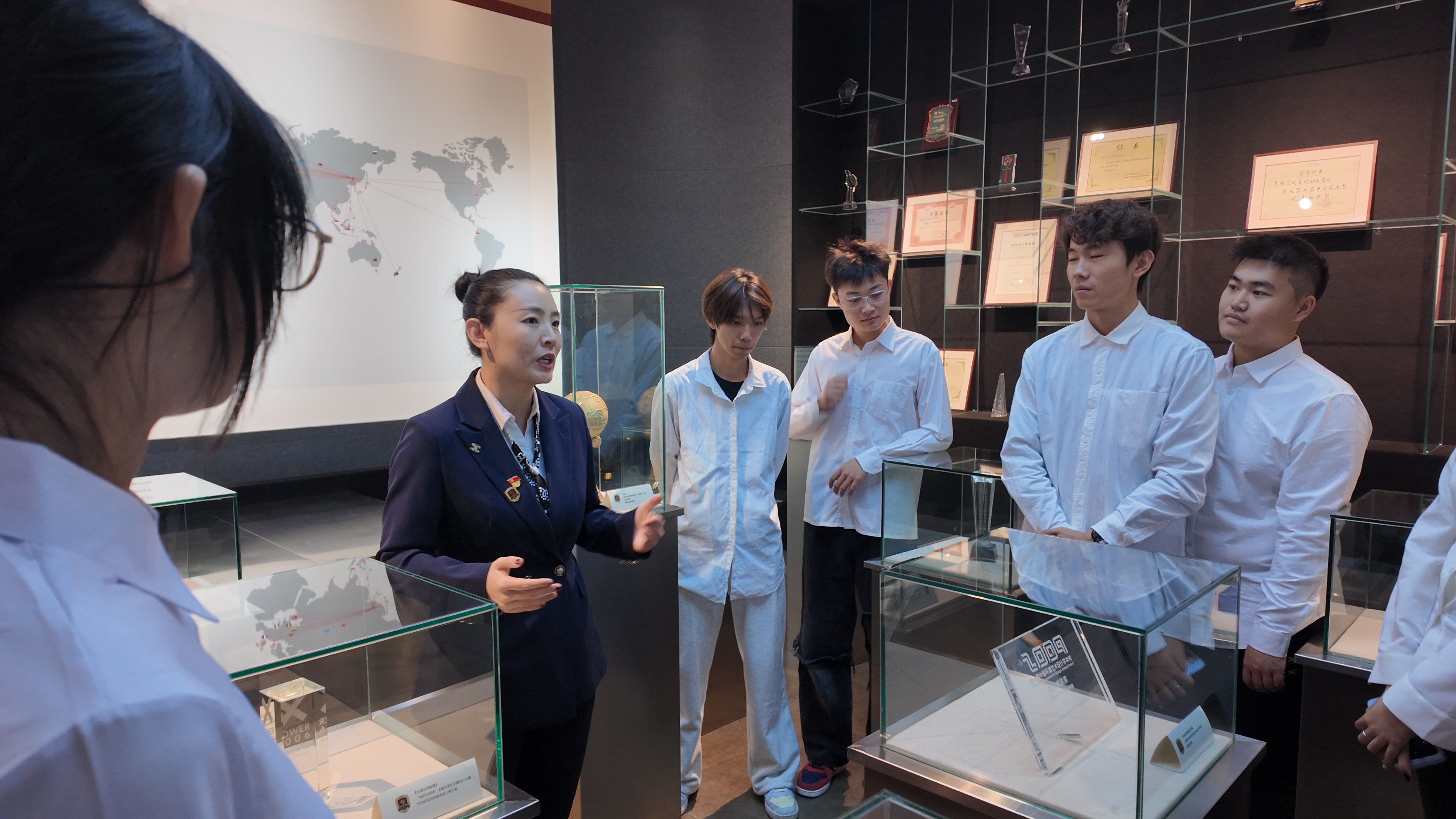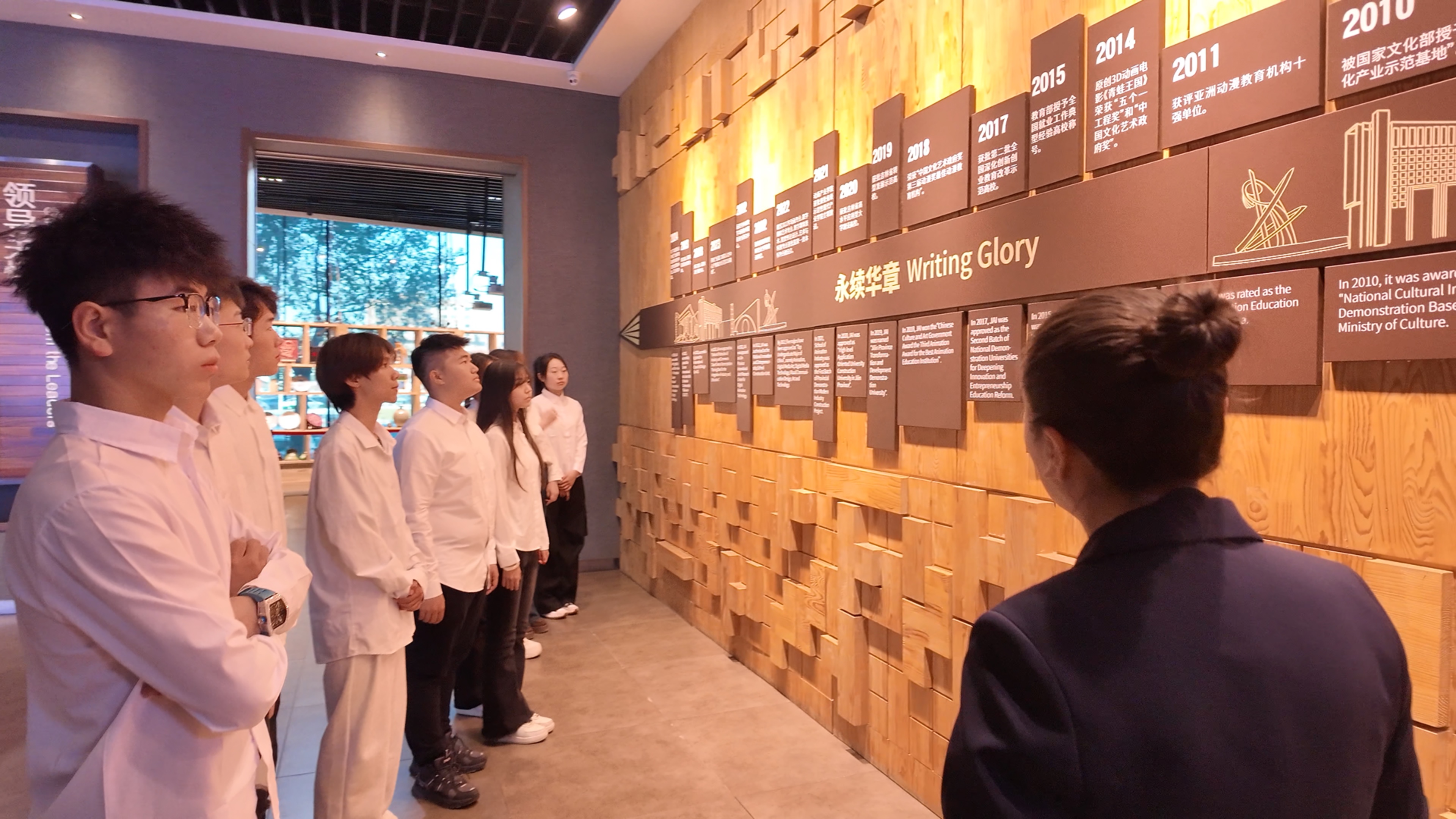 本次“行走的思政课”注重将习近平文化思想与学生的专业特点紧密结合。在文创产品前,林红老师讲到由我校师生共同创作的3D动画电影《青蛙王国》及其玩偶等文创产品,就是对传统艺术形式进行深入学习与传承创作而成,充满了中华民族的精神基因。围绕校史馆中的优秀学生作品,林红老师结合习近平总书记强调的“着力赓续中华文脉、推动中华优秀传统文化创造性转化和创新性发展”重要论述,引导学生思考如何用手中的画笔、镜头和代码,讲好中国故事,传播中国价值。吉动的发展史,就是一部社会主义文化强国发展史的缩影。也让我们懂得“立业之本”根植于社会主义先进文化的土壤;“精神之钙”汲取于革命文化的丰碑;“创意之源”深探于中华优秀传统文化的沃土。