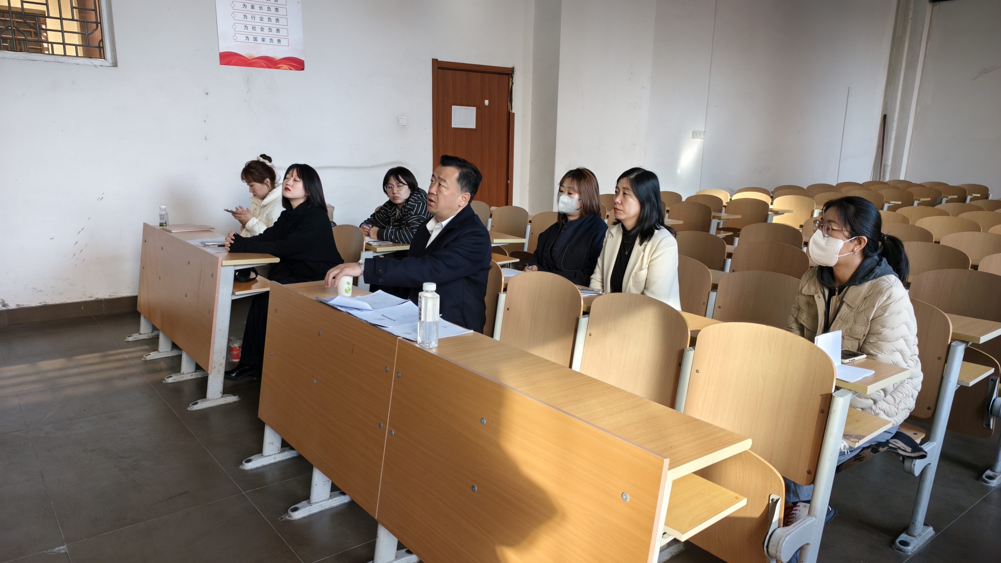 突破“重点题”:新老协同推动党的二十届四中全会精神“学理化落地”。针对“理论如何入脑”关键问题,备课会以“新老教师协同”为抓手:青年教师从学生认知特点出发,将抽象理论转化为可感知实践命题;资深教师立足“大备课”平台,围绕“高质量发展”等主线,结合专业背景梳理解读全会精神学理脉络。二者通过“问题共商、资源共享、成果共创”,既回应学生困惑,又推动党的二十届四中全会精神从“入课堂”到“入头脑”的学理转化。