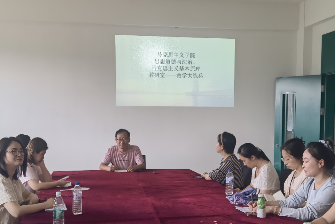 2025年7月10日下午13:30,马克思主义学院思想道德与法治教研室与马克思主义基本原理教研室联合在B601进行教学练兵活动。活动由马克思主义学院思想道德与法治教研室刘越主任主持,特邀孙建峰主任和蒋乔欣主任进行点评,教研室全体教师进行观摩。