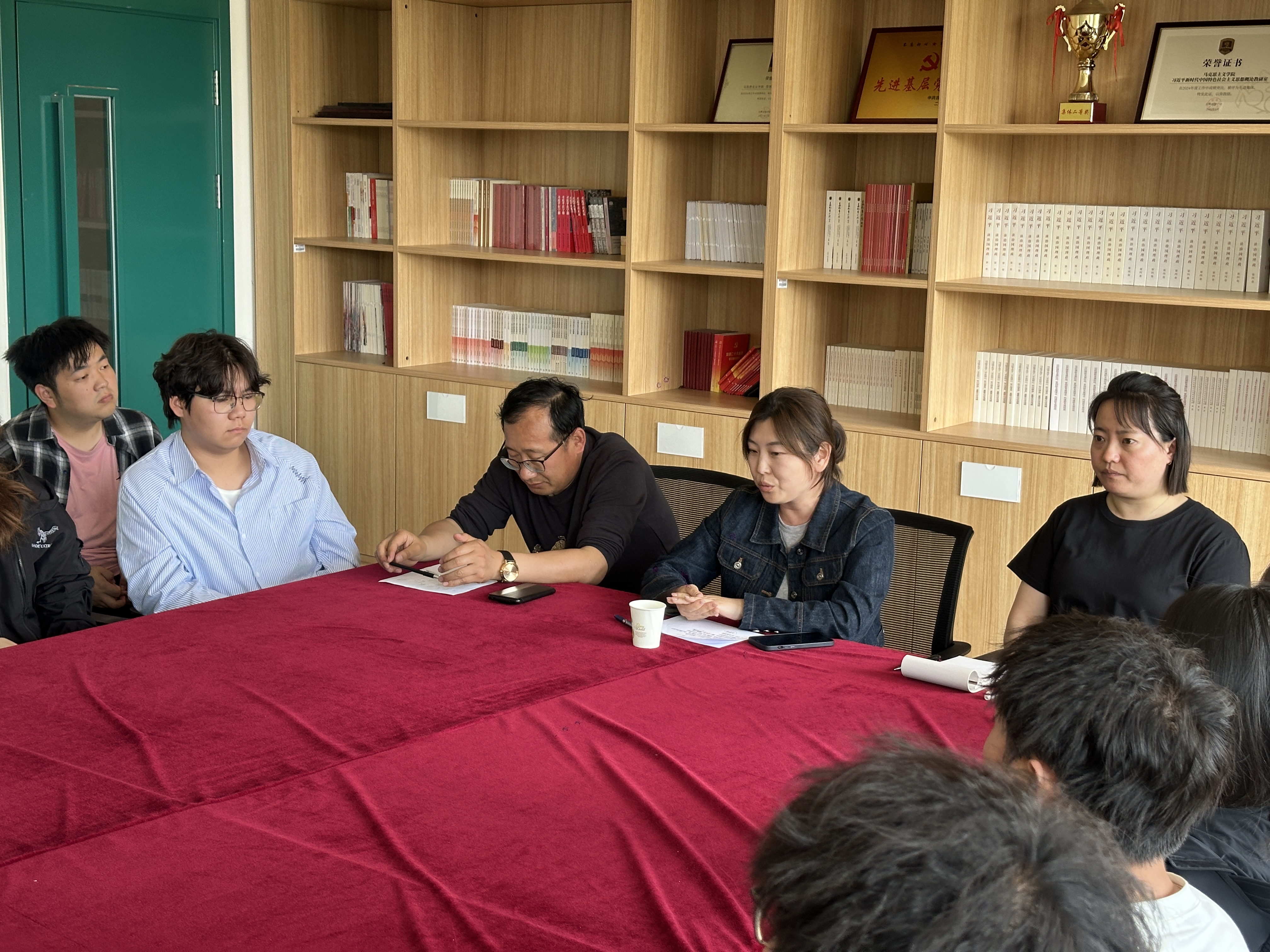 为进一步提升思政课教学质量,搭建师生沟通桥梁,2025年5月16日 13:30,马克思主义学院在B601举行学生座谈会。学院副院长孙颖主持会议,校督学王涛老师、教研室主任蒋乔欣、孙建峰、综合办任萌老师,以及 23级、24级学生代表齐聚一堂,共话思政教学发展。