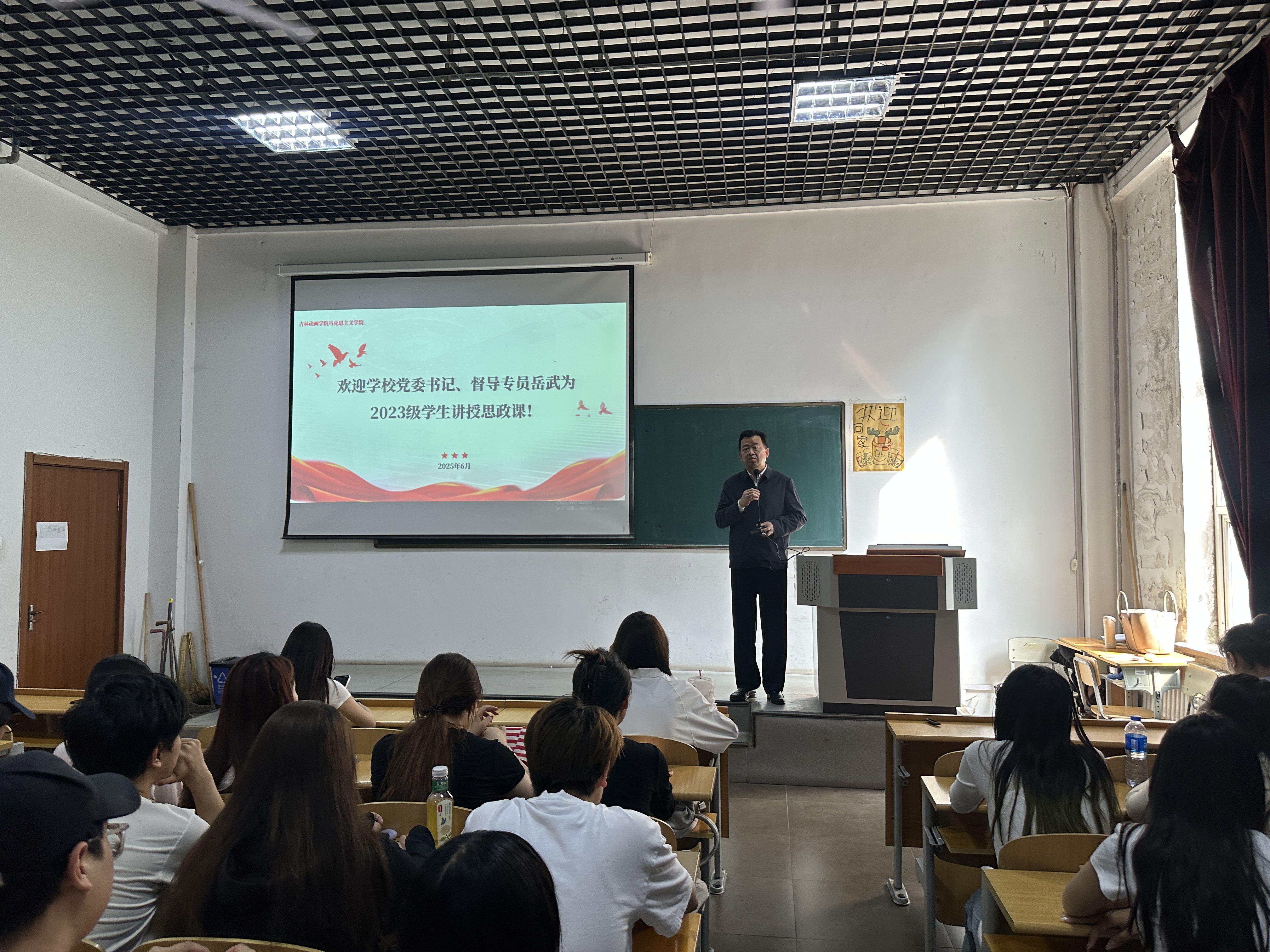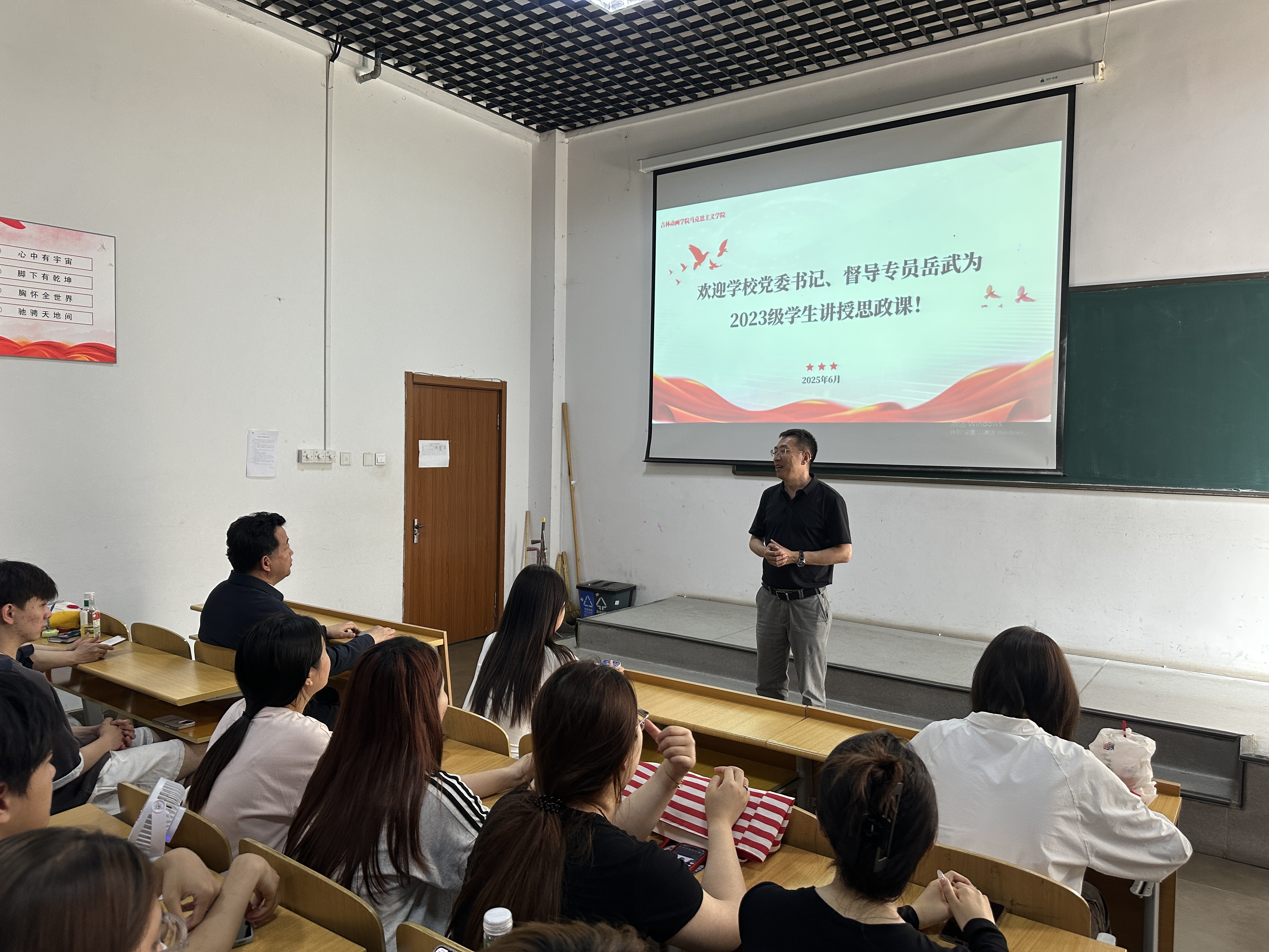 2025年6月17日下午15:20在F107教室,学校党委书记、督导专员岳武以“青春报国梦——文化创作与传承”为题,为我校2023级学生讲授思政课。