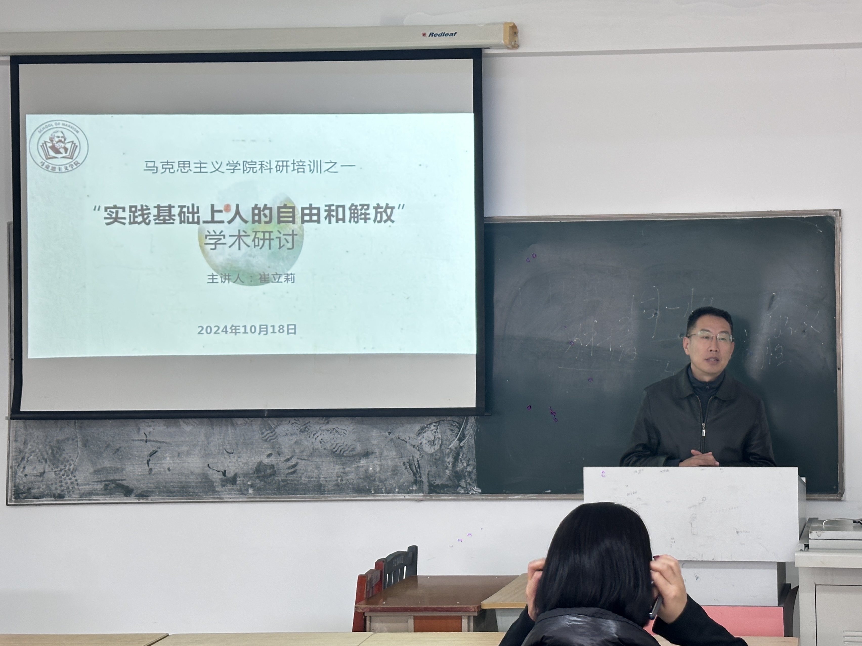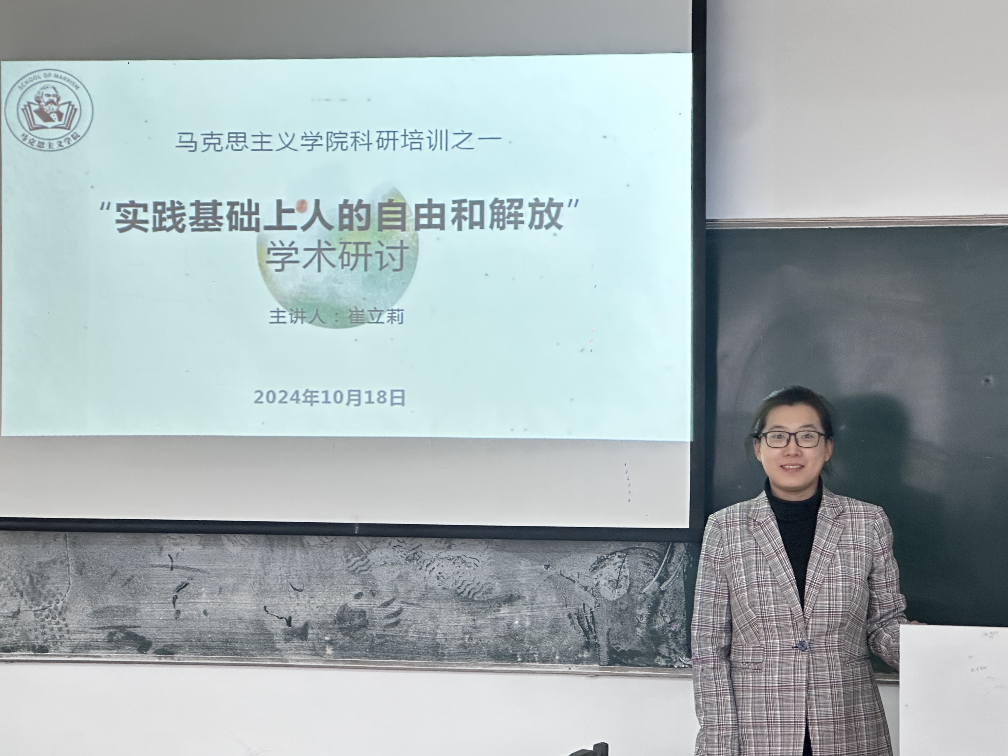 为了持续强化全体教师对马克思主义基本理论的系统学习,学懂悟透马克思主义理论精髓,马克思主义学院举行系列学术讲座。2024年10月18日13:30在B532教室,学院崔立莉副教授、吉林大学在读博士,为全体教师开展了题为“实践基础上人的自由和解放”的学术讲座。此次讲座由孙颖副院长主持。