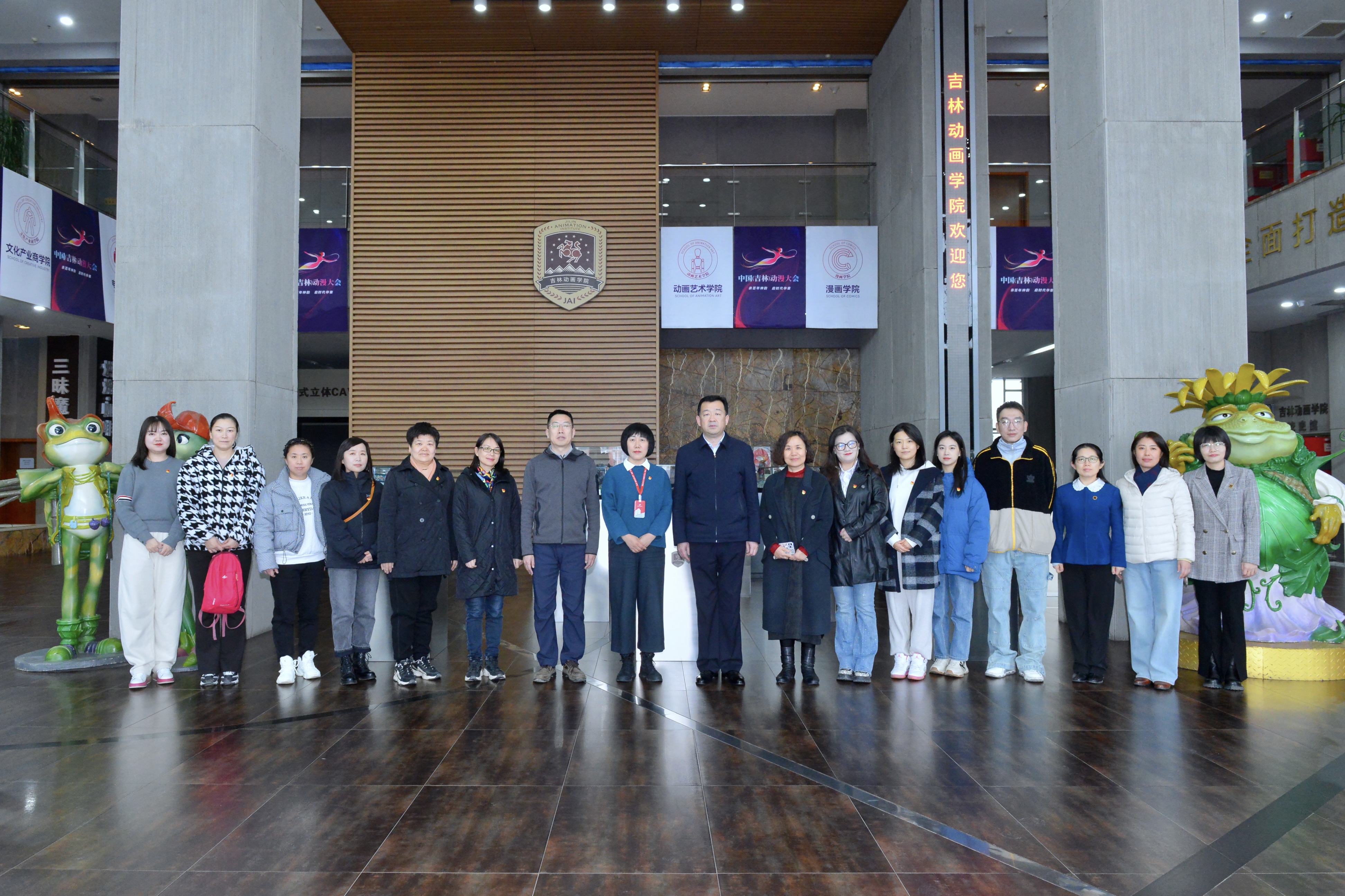 吉林广播电视台新闻综合广播党支部书记赵敏及党支部全体党员14人在我校党委书记、督导专员岳武、党群工作部副部长孙硕、马克思主义学院院长臧平、马克思主义学院党总支书记秦艺书的陪同下参观了吉林动画学院校史馆、吉林国际动漫博物馆、“学研产”一体化创作成果展厅,并就我校文创教育、文创产业发展进行交流研讨。