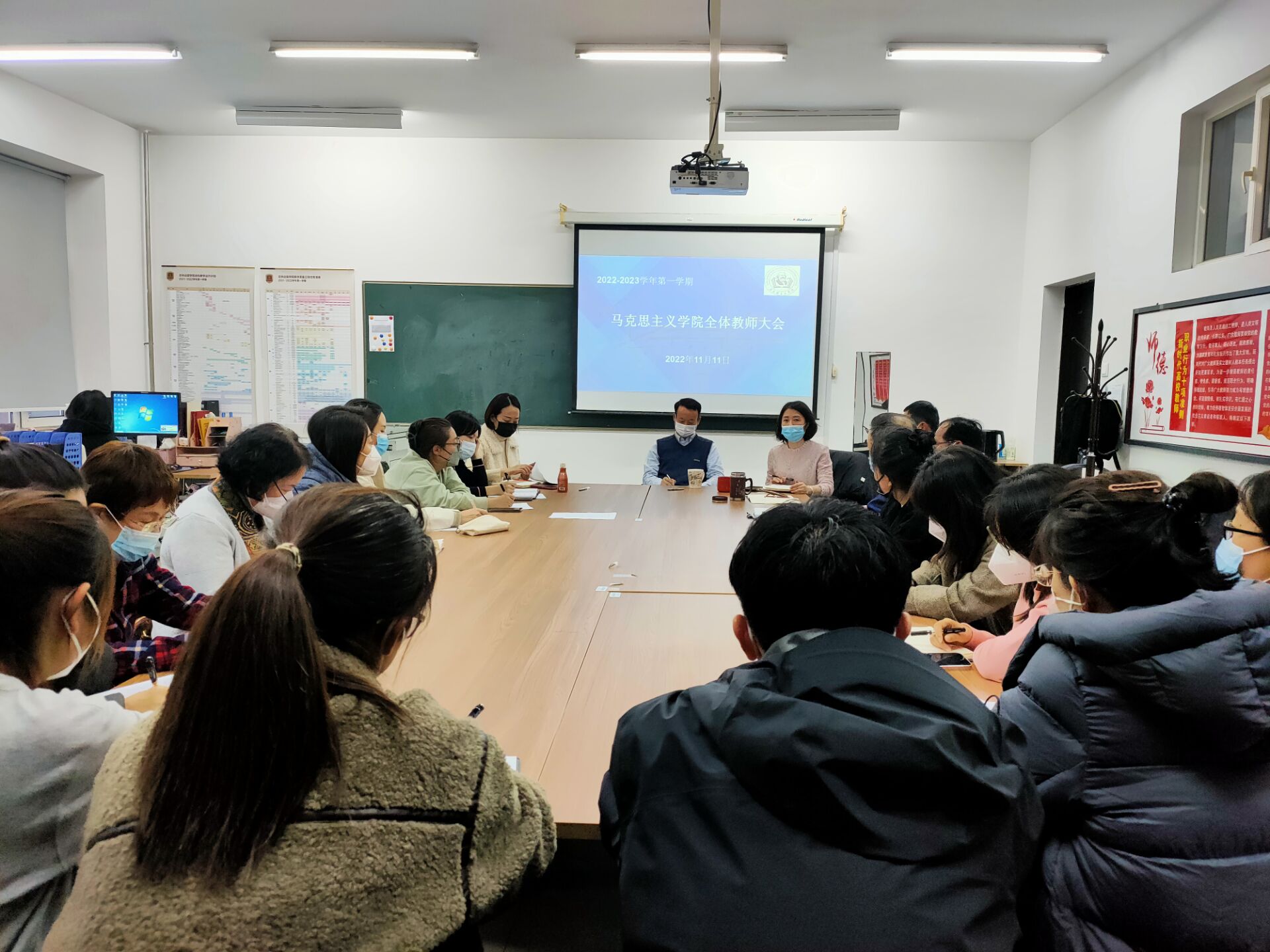 为了进一步提升思政教学质量,创新教学方法,马克思主义学院根据《2022-2023学年第一学期马克思主义学院期中教学检查工作方案》工作部署,于2022年11月11日14:20在B409会议室召开全院教师座谈会。座谈会由崔永军院长主持,孙颖副院长、秦艺书院长助理、陈桂艳教学督导及全体教师参会。