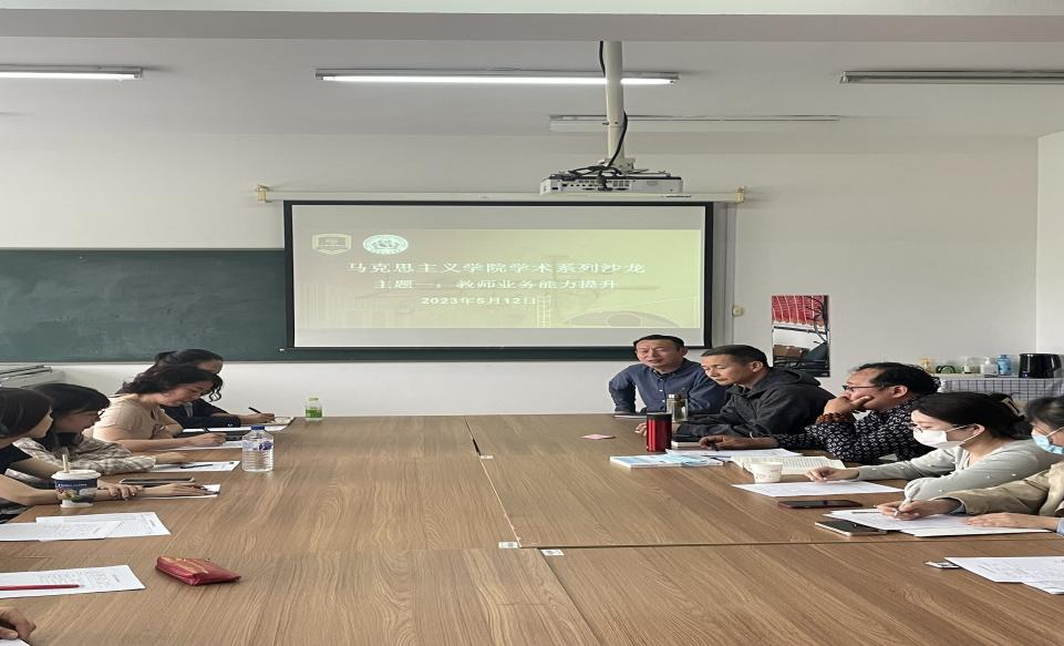 为加强马克思主义学院思政课教师队伍建设,提升思政课教师业务能力,推进思政课改革创新,2023年5月12日下午,马克思主义学院以“教师业务能力提升”为主题举办学术系列沙龙活动。本次活动由崔永军院长主持,郑明志、王金、张绍珂、孙颖四位老师做主旨发言,学院全体思政课教师参加本次活动并展开热烈研讨交流。