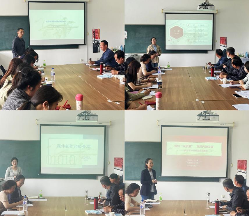 三、教学各环节规范要求解析。孙颖副院长从紧扣“高质量”,深思内涵发展,对教学各环节规范要求进行了解析,从学期初教学文件准备、学期中教学文件撰写与记录、学期末成绩核定与登录、材料归档等方面对学院及学校相关文件要求结合工作实际进行了解读,要求全体思政教师,尤其是新入职教师要做到知责于心、担责于行,确保各教学环节设计精心,不断谋求实效性方法,进而促动内涵发展。