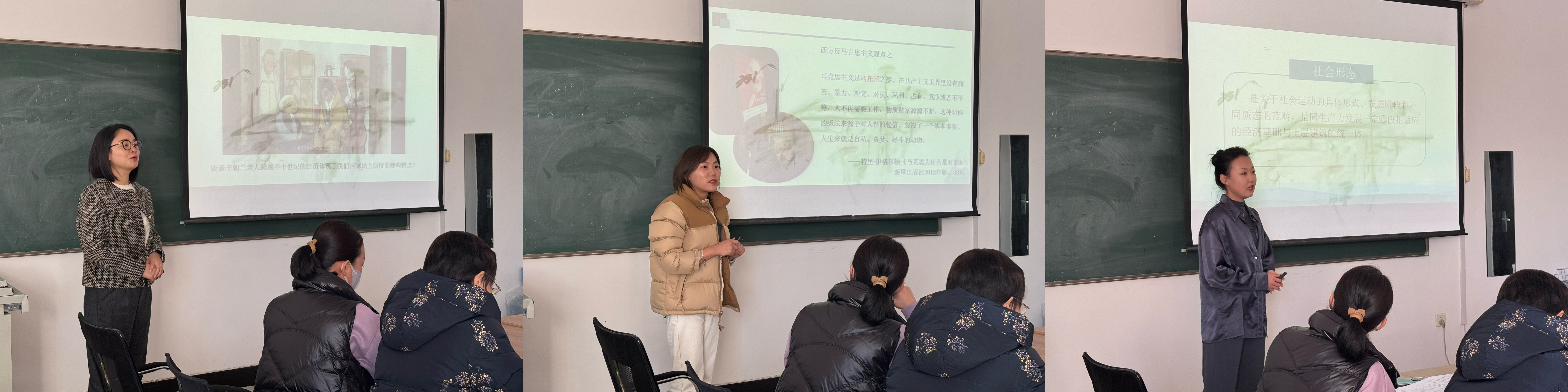 座谈会上,新入职教师王若实、代磊、李卓君三位教师分别做教学展示,随后三位教师分别发表个人入职以来的观摩感受,以及今后工作发展规划,分别从备课过程、教学内容设计、课堂管理以及个人提升等方面畅谈体会。