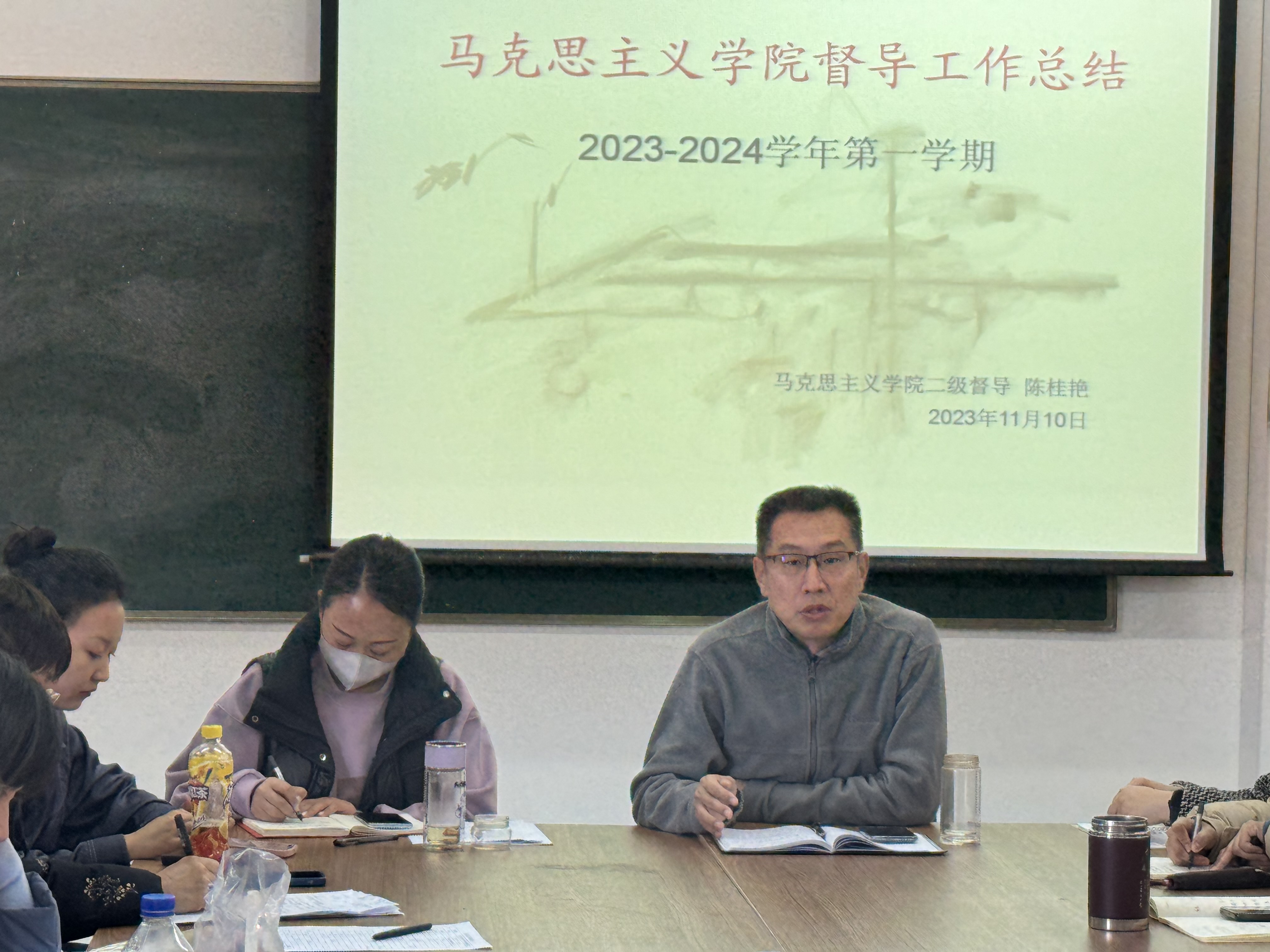 最后臧平院长做总结发言,一是针对陈桂艳教学督导所提出的期中教学检查出现的问题,希望教师们有则改之无则加勉,注重专业素养提升。二是马克思主义学院将组建科研团队,团队领头人带领马克思主义学院教师发展科研立项,打好基础。希望教师们积极参与,为马克思主义学院建设发展做贡献。