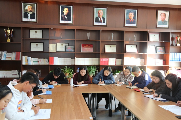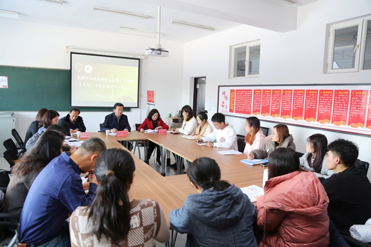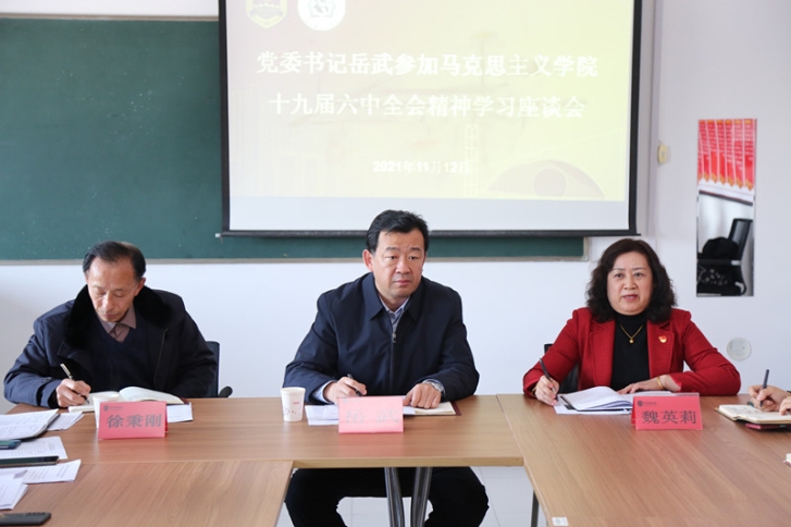 2021年11月12日下午,马克思主义学院组织全体教师学习党的十九届六中全会议精神,研读《中共中央关于党的百年奋斗重大成就和历史经验的决议》文件。学校党委书记岳武、学校党群工作部主任徐秉刚亲临参加,与教师一起畅谈、交流学习党的十九届六中全会精神收获体会。