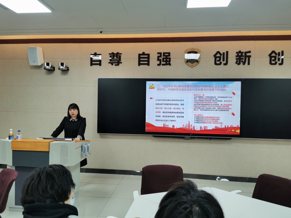 11月17日上午,王春利副校长以《国之大计 党之大计——学习习近平总书记教育重要论述》为题为21级艺术专业学生上思政课,她从习近平总书记教育重要论述的时代背景;习近平总书记教育重要论述的主要内容;习近平总书记教育重要论述的重大意义三个方面向学生做了解读。