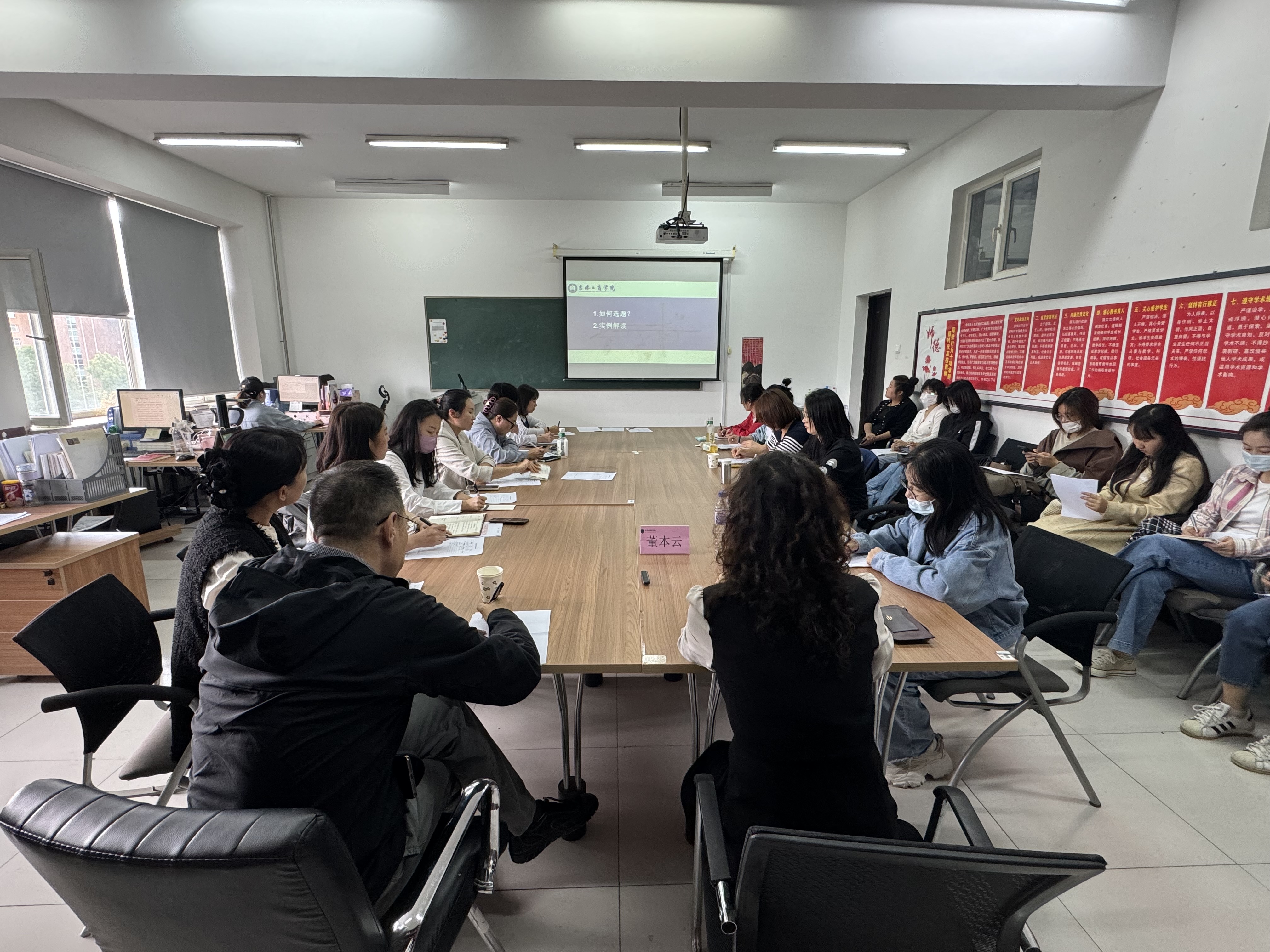 为有针对性地提升马克思主义学院教师学术研究和科研能力,2024年5月31日下午13:30,在B409大会议,马克思主义学院特邀请了吉林工商学院副院长、管理学博士、汽车产业经济学博士后董本云教授作“明确需求 科学选题”专题讲座。讲座由马克思主义学院院长臧平教授主持。